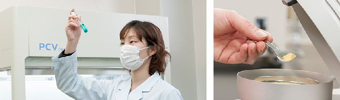 生産と別に品質管理スタッフが常駐し、原材料から最終製品まで徹底した管理・分析を行っております。